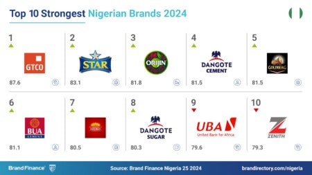 Beer brand Star (brand value up 62% to NGN55.8 billion) scored particularly highly in familiarity and consideration and is Nigeria’s second strongest brand with a AAA- rating. Fellow alcohol brand Orijin (brand value up 101% to NGN104.4 billion) more than doubled its brand value and earned a AAA- BSI rating, making it Nigeria’s third strongest brand.