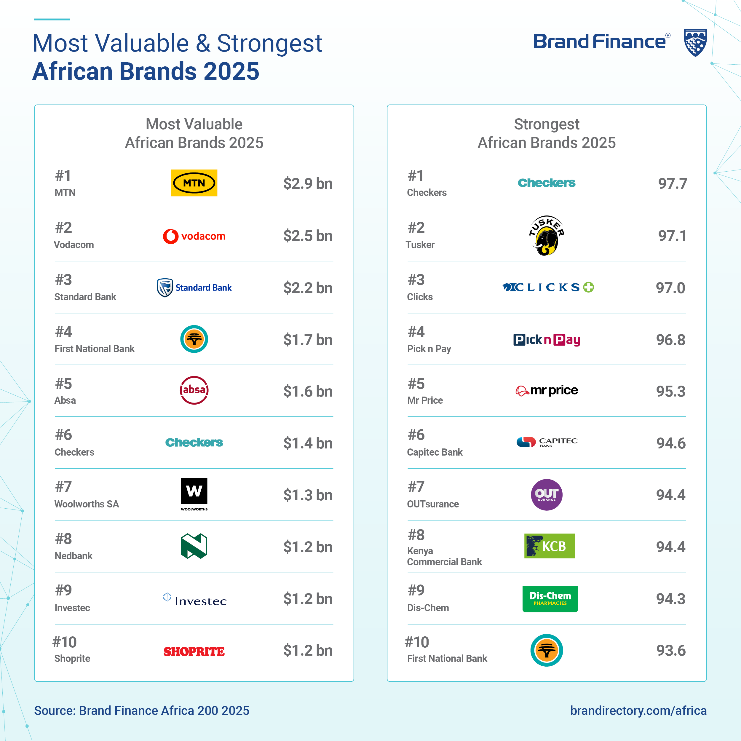 New data from Brand Finance reveals South Africa dominates regional rankings, contributing 71% of total brand value