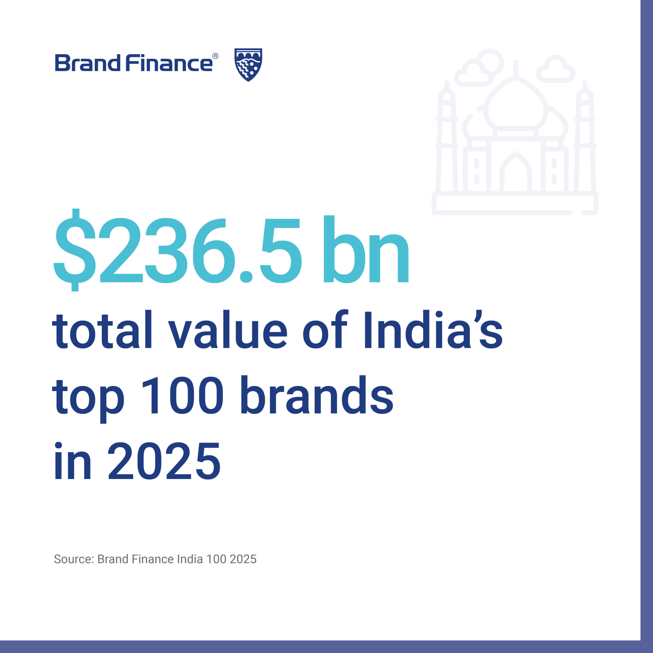 MUMBAI, 25 June 2025 – The total brand value of the India 100 rankings now stands at USD236.5 billion, according to the latest India 100 2025 report by Brand Finance.