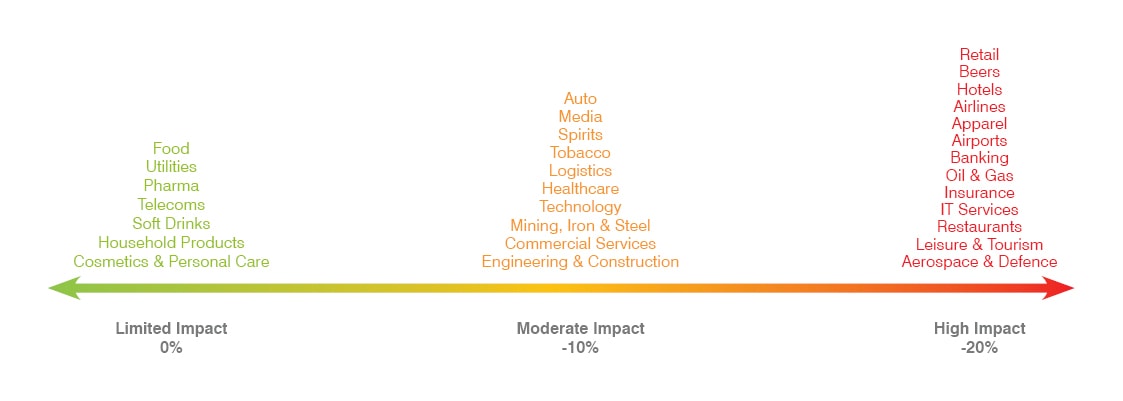 Brand Finance estimates the likely impact on brand value for each sector based on the impact of the pandemic on enterprise value observed in the period between January 2020 and September 2020. The sectors can be classified into five categories: