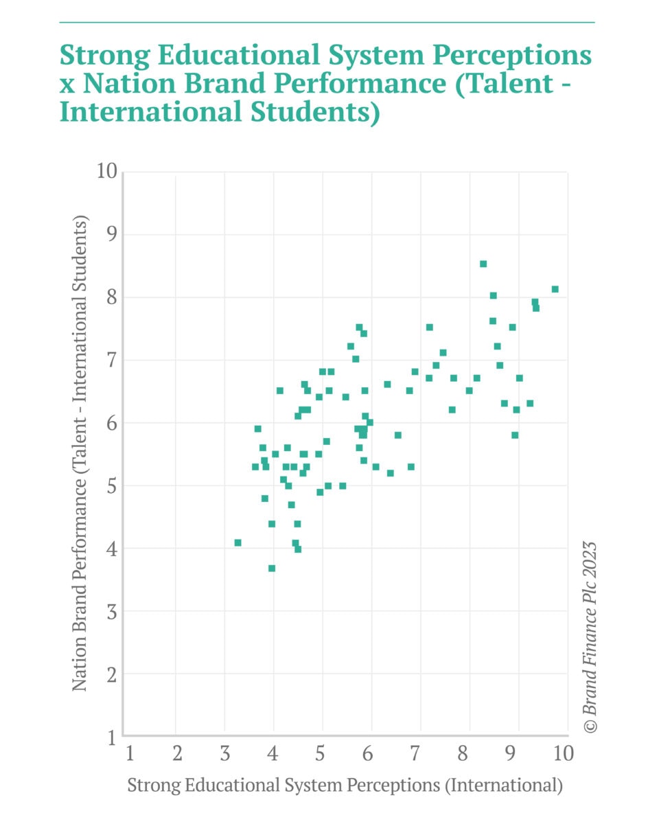 Our data proves that perceptions towards a nation’s “strong education system” can positively impact the inbound number of foreign students.