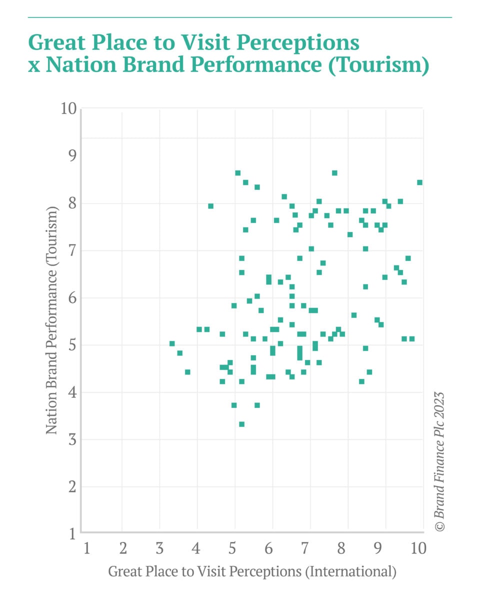 Our data proves that being viewed a “great place to visit” can boost a nation’s performance on tourism.