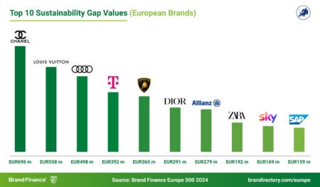 Dior (valeur de marque en hausse de 8% à 13.7 milliards d’euros) devient la huitième marque européenne la plus forte, affichant également une notation de force de marque AAA. La marque obtient des scores exceptionnels sur les indicateurs clés au sein de l’étude de Brand Finance, notamment en termes de réputation, de familiarité et de considération.