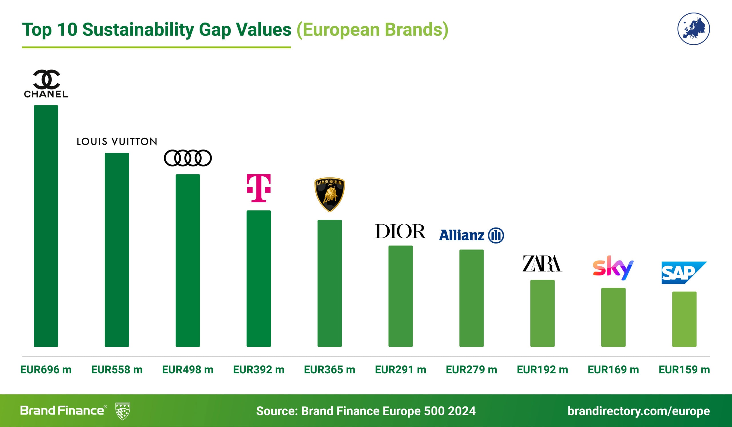 « Les grandes marques françaises s’épanouissent sur la scène européenne, non seulement financièrement, mais aussi grâce à leurs patrimoines uniques, leur notoriété mondiale et leur pouvoir de séduction incomparable auprès des consommateurs. Des noms emblématiques comme Louis Vuitton et Chanel continuent de fixer la norme, tandis que d'autres marques bien connues réalisent également des avancées remarquables – de Orange gagnant 2 places à Givenchy gagnant 42 places au sein du classement Europe 500 2024 de Brand Finance, soulignant la force concurrentielle des marques de luxe françaises en Europe. »