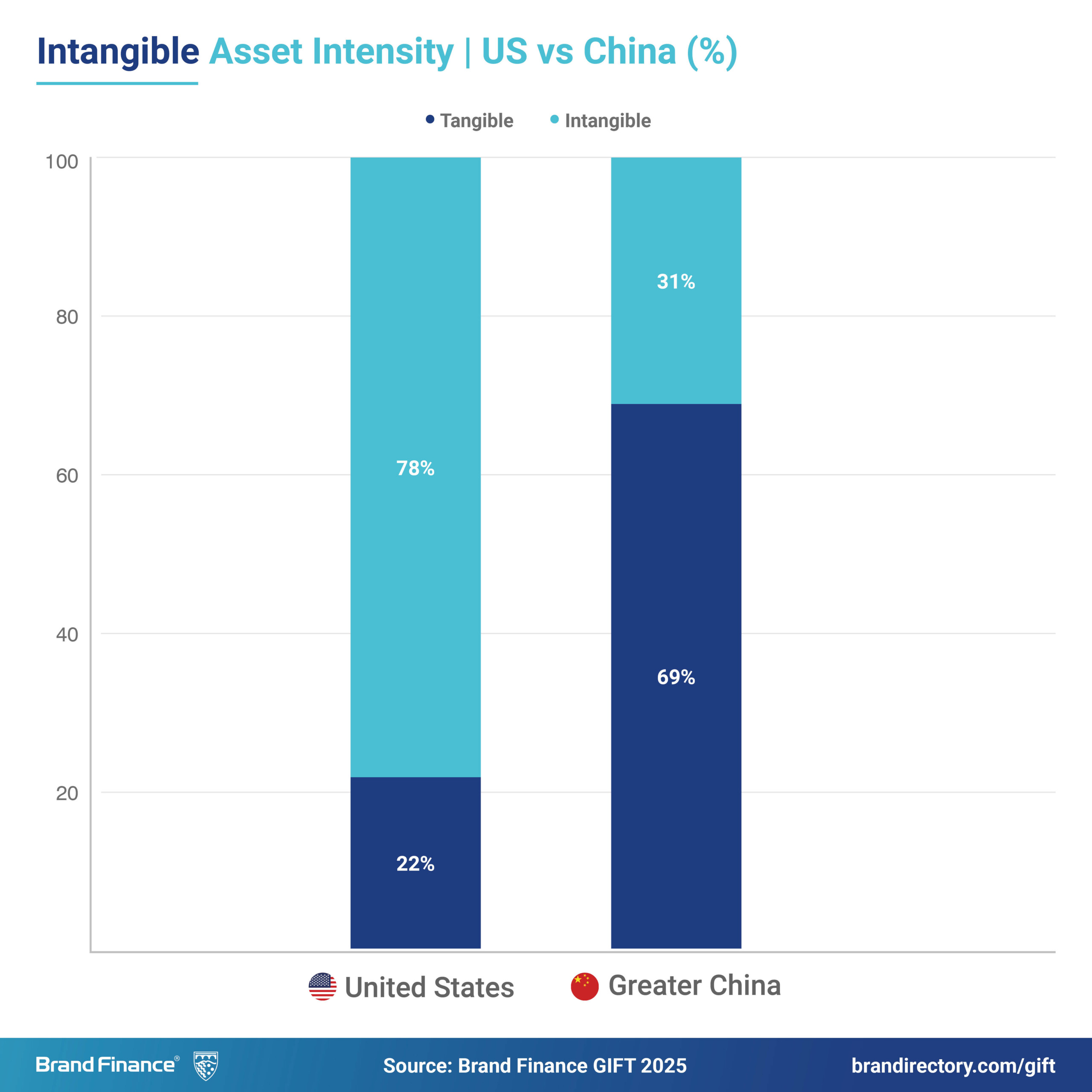 “Despite being a predominantly tangible market, China is experiencing the effects of a shifting economy, seen in the rise of its intangible asset value from 15% in 2024 to 31% in 2025. This reflects a deviation towards knowledge-driven sectors such as technology & IT and semiconductors, which account for 35% of the nation’s share of intangible assets. A shift of this magnitude highlights China’s technological advancement and growth to become a global force of innovation.”