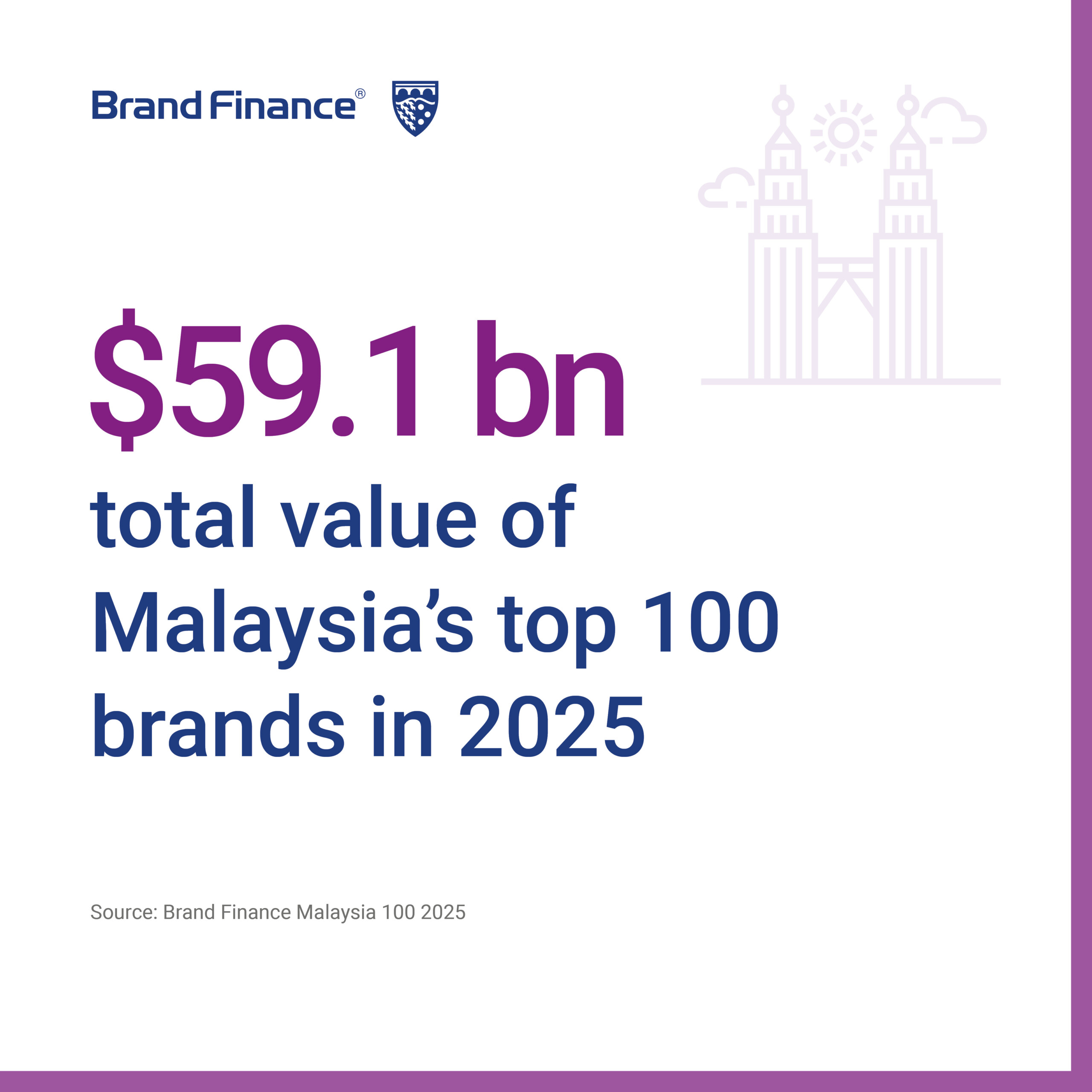 KUALA LUMPUR, 29 MAY 2025 – Malaysia’s top 100 brands grew by 16% in 2025, reaching a total brand value of USD59.1 billion, reflecting strong national economic performance, according to the latest Malaysia 100 2025 report by Brand Finance, the world’s leading brand valuation consultancy.