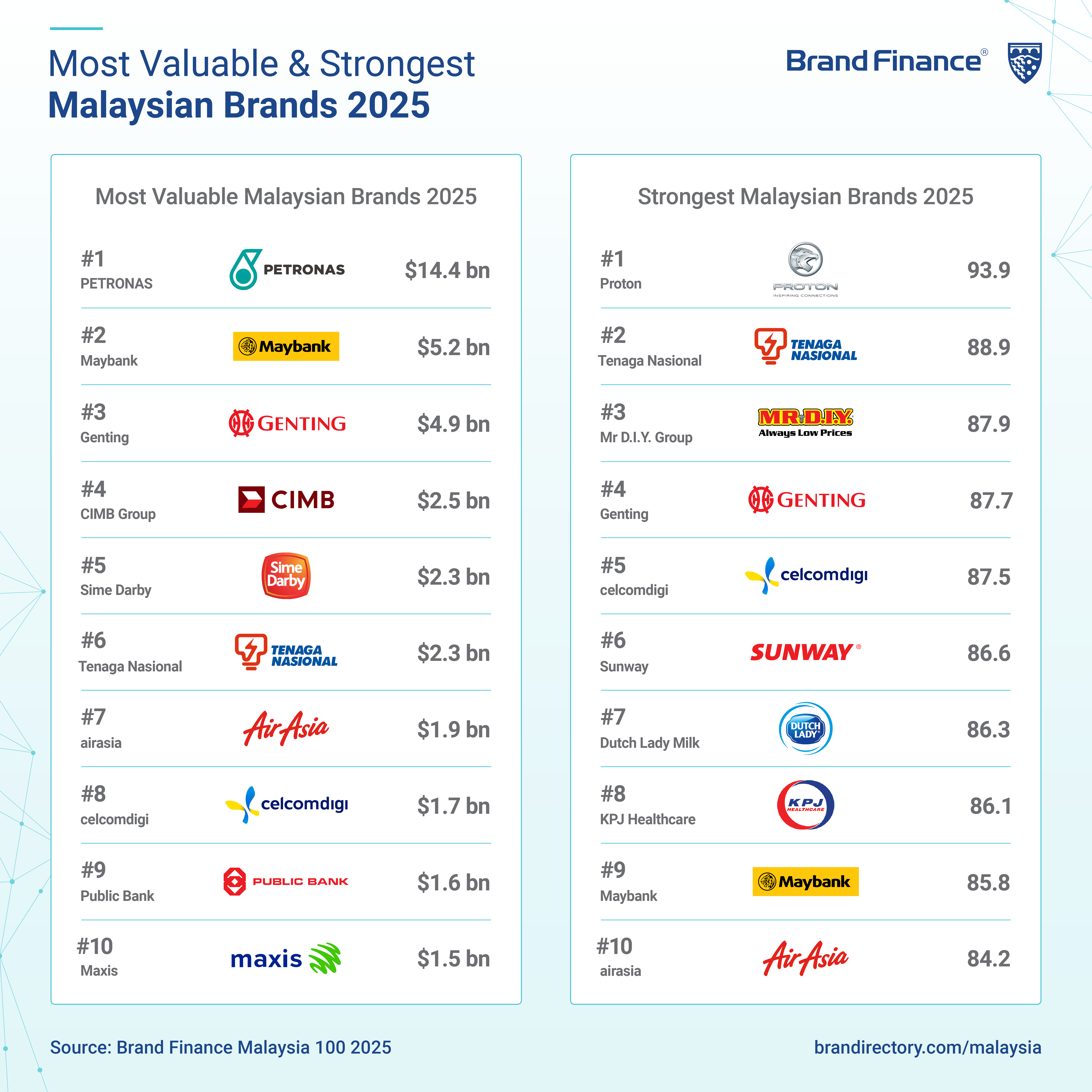 Other highlights from the Brand Finance’s Malaysia 100 2025 report: