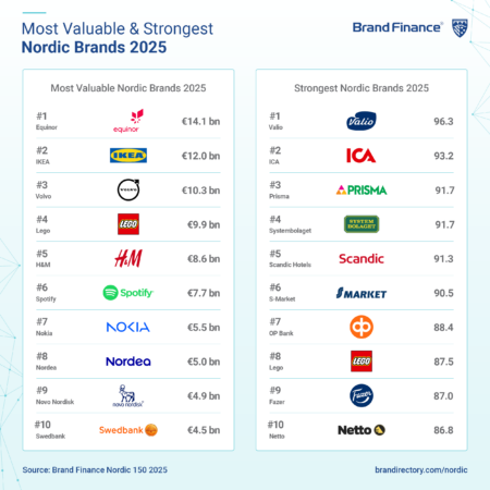 LONDON, 2 September 2025 – Brand Finance’s latest Nordic 150 2025 ranking reveals a region where tradition and innovation go hand in hand, allowing Nordic brands to hold their ground and forge new paths despite shifting economic conditions and currency pressures. According to Brand Finance, the world’s leading brand valuation consultancy, the total brand value of the top 150 Nordic brands edged up by 1% this year, reflecting a story of steady progress and long-term trust built with consumers across global markets.
