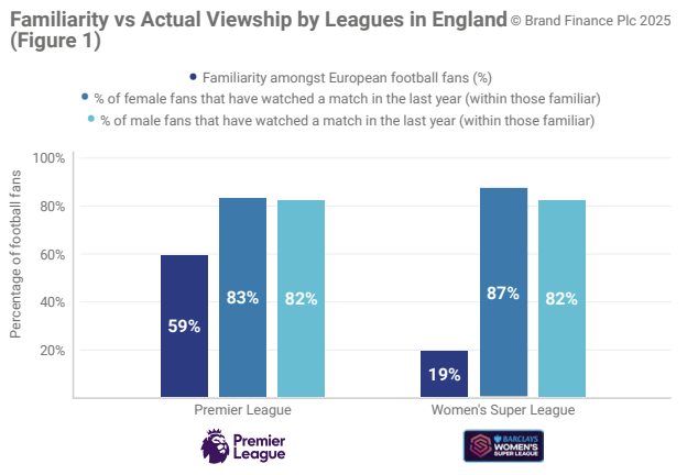 The numbers suggest that those who are familiar with the Women’s Super League are more likely to become active fans. This indicates that the Women’s Super League has a higher engagement ratio than the Premier League, but at a lower scale, given the Premier League’s much higher familiarity among European football fans.
