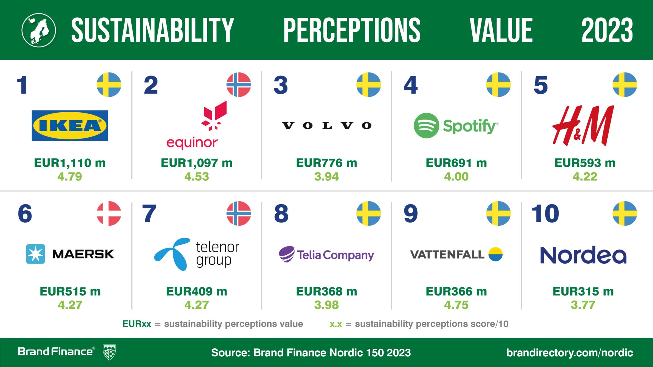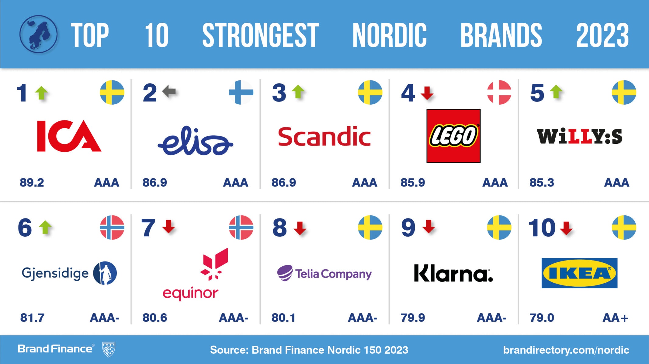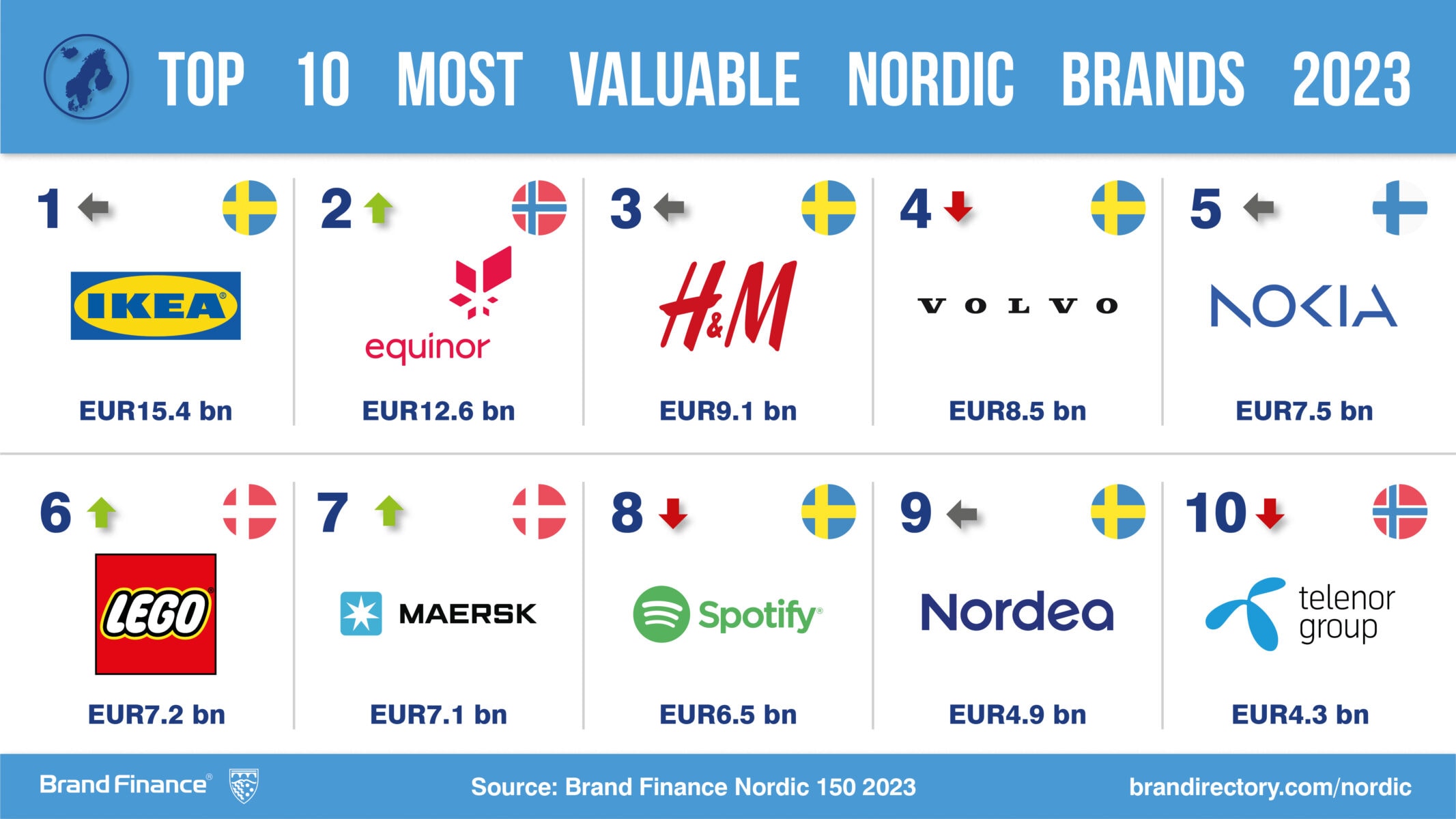 Every year, leading brand valuation consultancy Brand Finance puts 5,000 of the biggest brands to the test, and publishes over 100 reports, ranking brands across all sectors and countries. The world’s top 150 most valuable and strongest Nordic brands are included in the annual Brand Finance Nordic 150 2023 ranking.