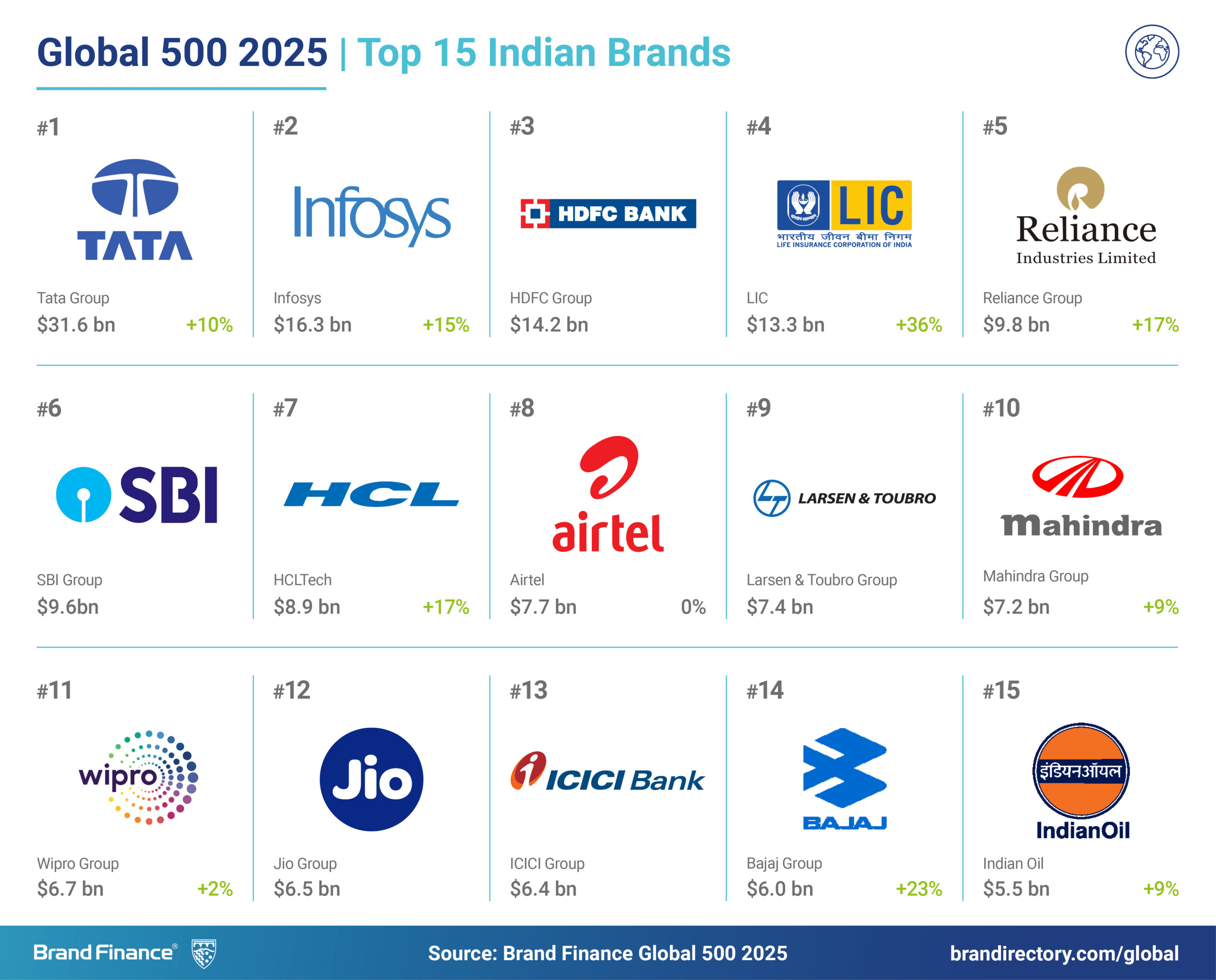 Several other Indian brands from various industries have made notable strides in the 2025 global ranking, reflecting their strong market presence and growing influence. In the oil & gas sector, Indian Oil (brand value up 9% to USD5.5 billion), reinforced its status as a key player in the global energy sector.