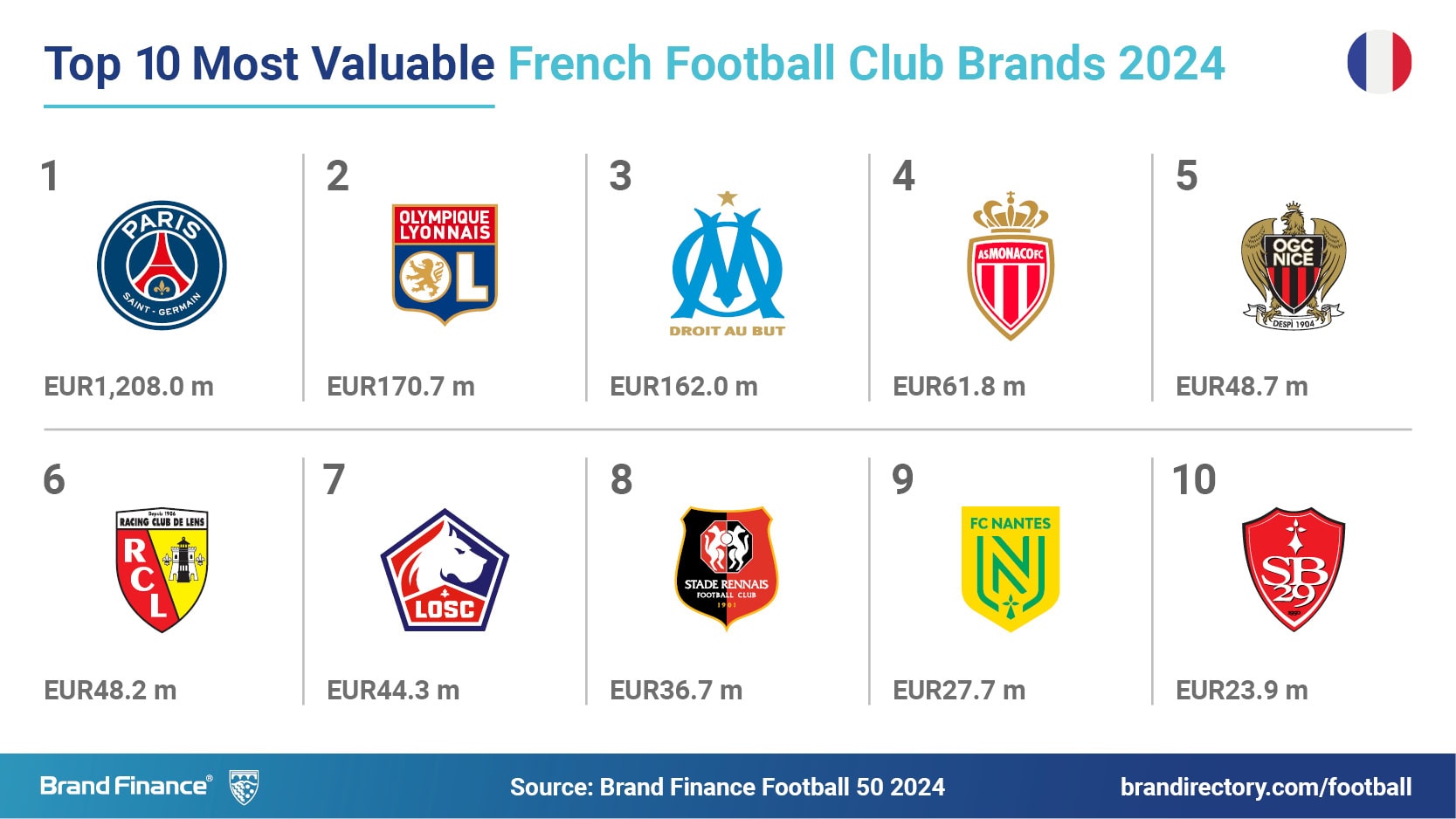 Avec un indice de Force de Marque (BSI) en hausse à 86,2/100 et une note AAA correspondante, le PSG reste également la marque de club de football la plus forte de France. Elle a également grimpé de trois rangs pour devenir la 8e marque de club de football la plus importante au monde. Les solides performances du PSG sur le terrain continuent de renforcer sa réputation mondiale. Le club a maintenu sa domination en Ligue 1, remportant son troisième titre de champion consécutif et son 12e au classement général, ainsi que des victoires en Coupe de France et en Trophée des Champions. Le PSG jouit également d'une forte perception mondiale sur les attributs « fans passionnés », « joueurs vedettes » et « qualité du stade ».