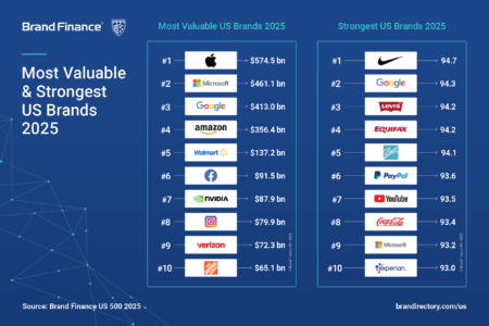 DALLAS, March 25, 2025 – According to the latest report by Brand Finance, the world’s leading brand valuation consultancy, America's biggest brands are growing faster than the economy. The total brand value of the 500 most valuable US brands rose 7.4% to $5.79 trillion, outpacing US economic growth of 2.8%.