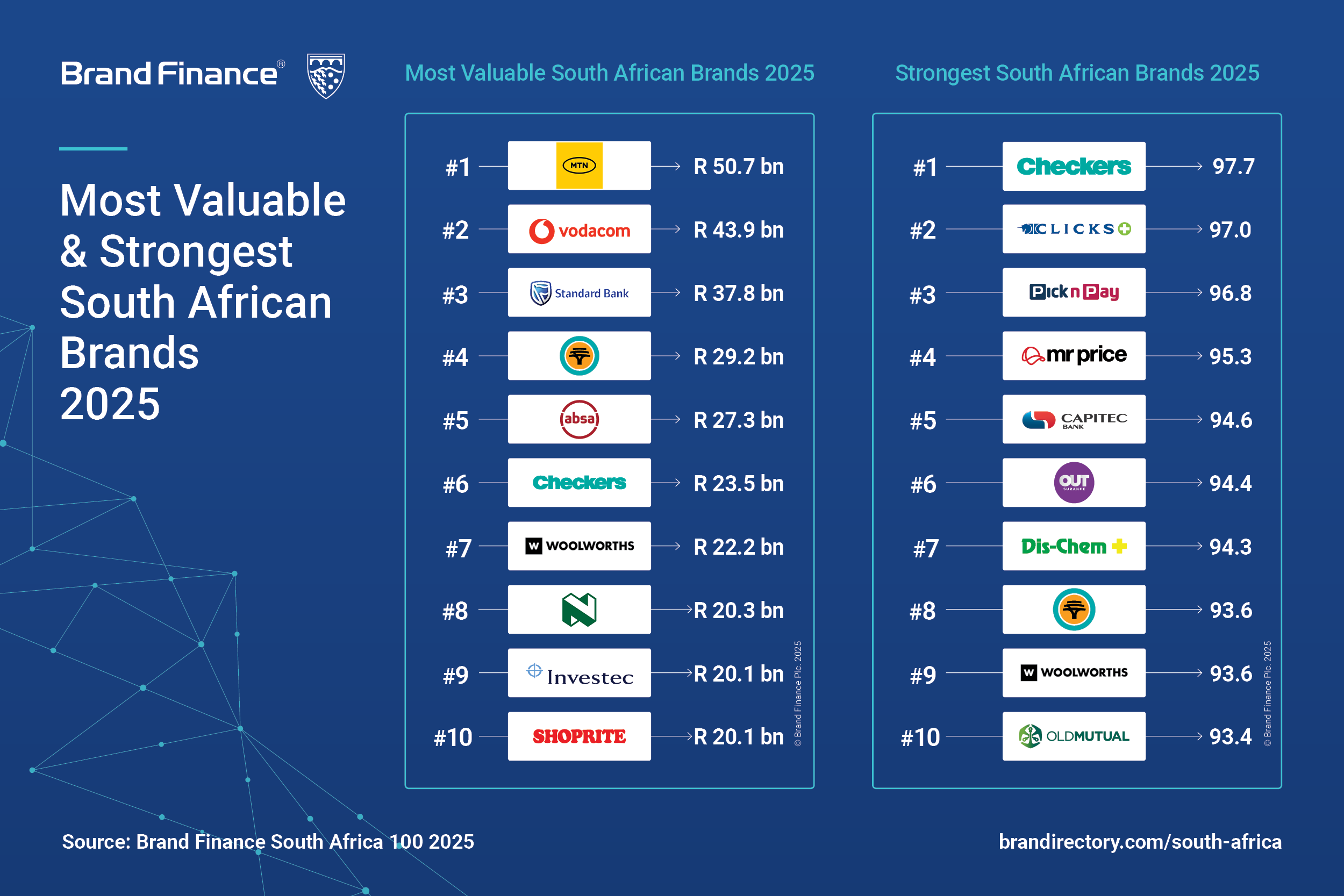 Every year, Brand Finance ranks 5,000 global brands, with the 2025 South Africa Top 100 Report highlighting the most valuable and strongest local brands.