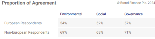 European respondents are 25% less likely than people living outside of Europe to believe that a brand is committed to environmental sustainability. Compared to non-European respondents, Europeans are 26% less likely to agree that a brand is commitment to social sustainability, and 22% less likely on governance.