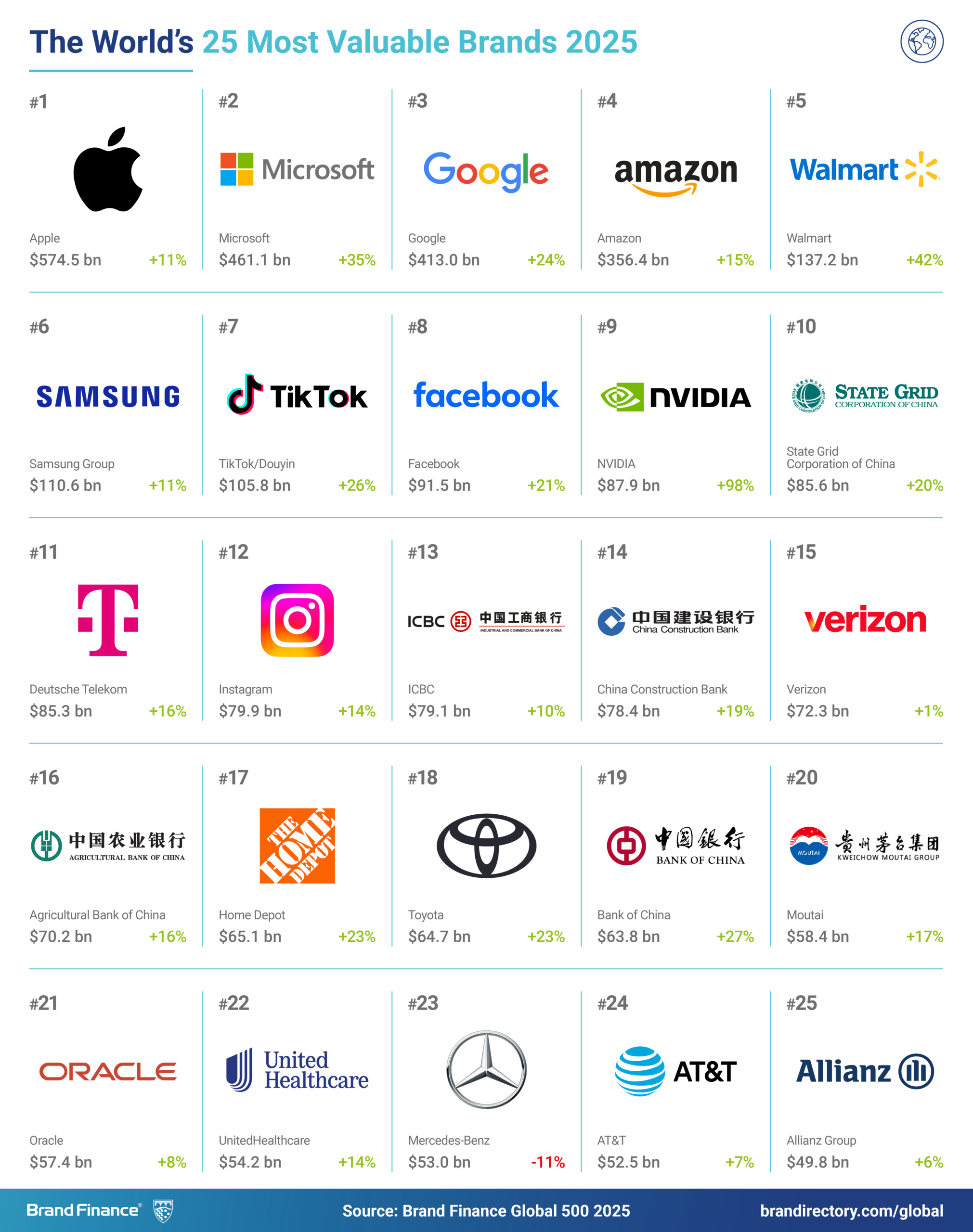 According to Brand Finance’s Global 500 2025 research, 4 out of the 5 most valuable brands in the world are technology brands: